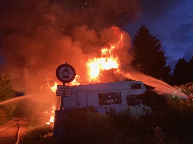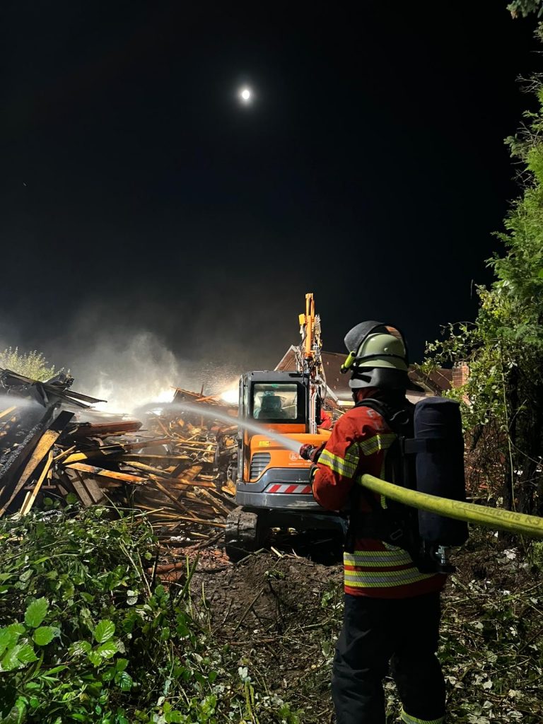 Dank des schnellen und koordinierten Einsatzes von insgesamt 97 Einsatzkräften dauerten die Löscharbeiten bis in den frühen Morgen.